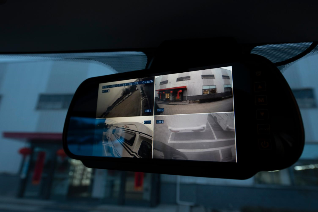 四路监控显示屏位于驾驶室上方,方便实时掌握车外情况。
