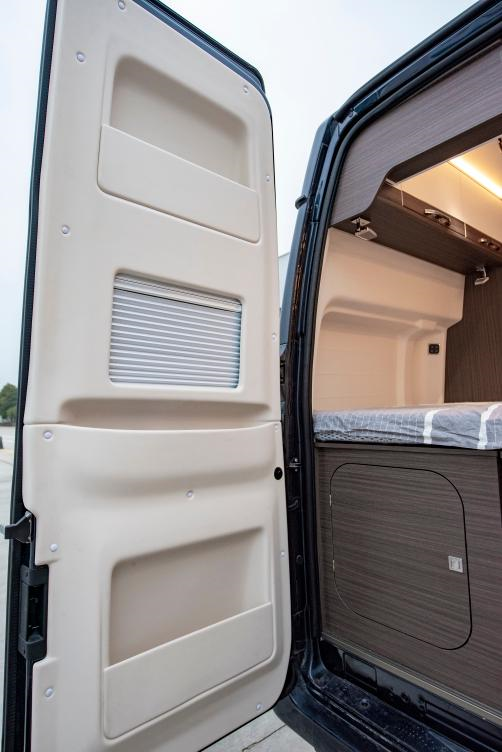 车尾设有玻璃钢爬梯,方便上下车顶;尾部还配备倒车影像、倒车雷达,为日常倒车、行车提供视野;畅旅版还配有双车自行车架,为户外旅行带来更多乐趣。
