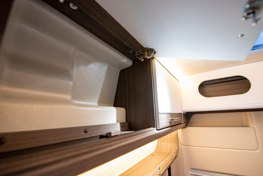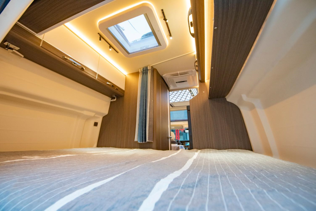 尾部休息区设有1350x2100mm大尺寸横床,可满足多人睡眠休息;照明系统配备阅读灯和氛围灯,为阅读、休息娱乐提供方便。