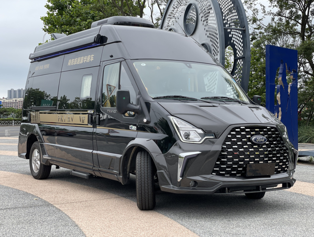 新车外观以黑色为主色调,搭配满天星式进气栅格,给人豪华大气的感觉;车身外尺寸5910x2060x2590/2800mm,车身高度低于3米,通过性能优异,轴距3750mm,总质量3700kg,额定载客6人,上蓝牌,C照即可驾驶。