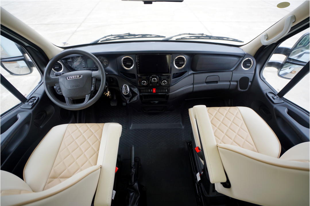 这款房车采用了稳定性、减震性优异的依维柯欧胜底盘,驾车更加舒适;动力系统搭载3.0T柴油涡轮增压发动机+8速自动挡变速箱,动力充沛,满足国六排放标准;制动系统配备制动迅速、散热性佳的盘式制动系统,行车安全更有保障。