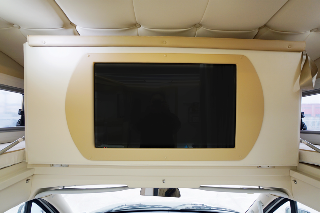 床铺翻折起来是一台32寸液晶电视,具有影音播放等功能,可以丰富户外旅行的娱乐方式。