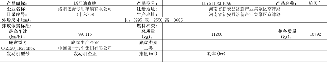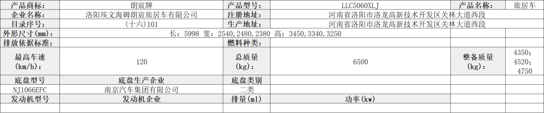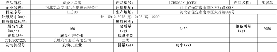 公告车型——自行式房车