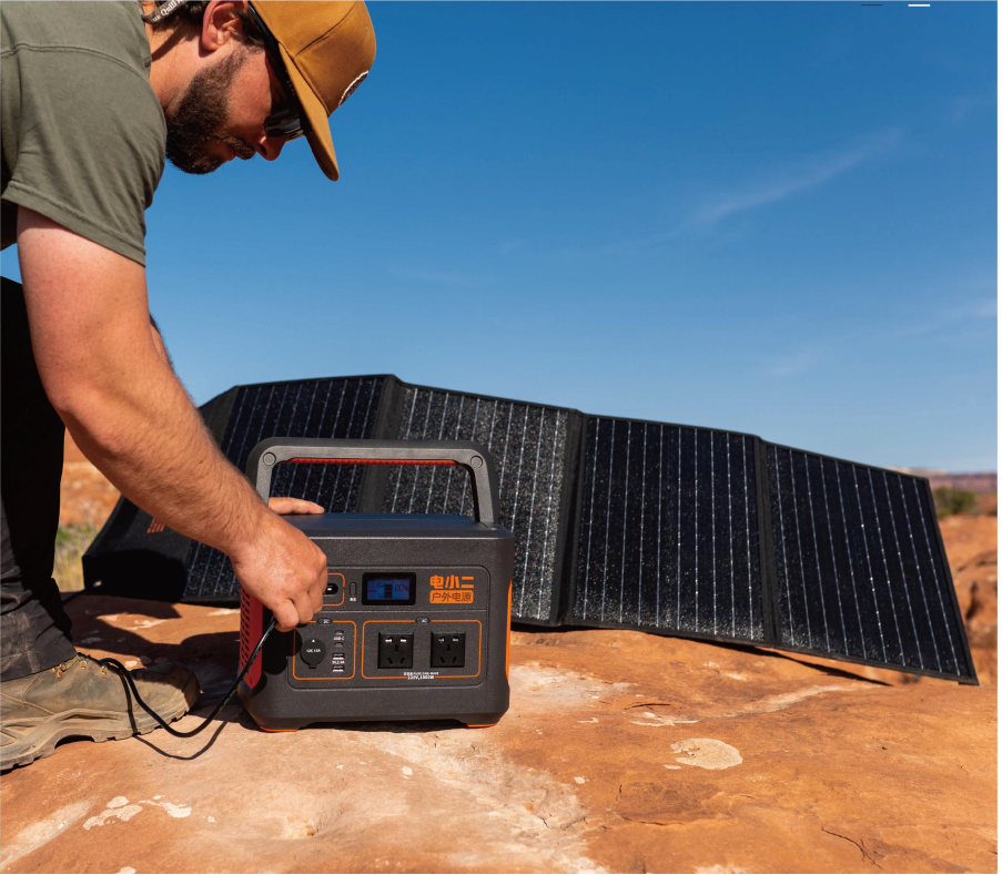 电小二便捷式太阳能板能将太阳能转化为电能储存于电小二户外电源。不依靠市电,减少充电烦恼,使用场景广泛,户外也有源源不断的电力。