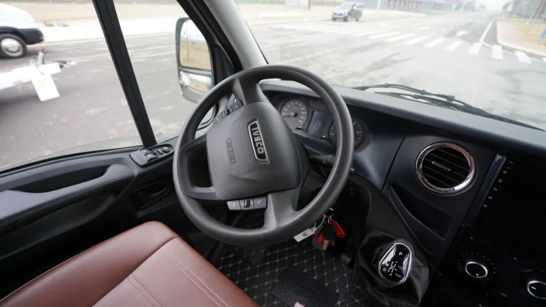 驾驶室主副驾驶座均配备皮革包覆空气悬挂座椅(可旋转设计),有效支撑腰部、背部,减少久坐疲劳;地面铺设脚垫,拥有更好的驾车体验;行车方面配备了多功能方向盘、定速巡航、电动加热加宽外后视镜、胎压检测、车道偏离系统等,为日常行车提供方便。