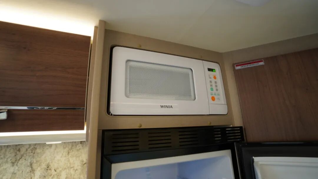 橱柜右侧储物柜内嵌了一台大宇微波炉,方便快速加热食物。