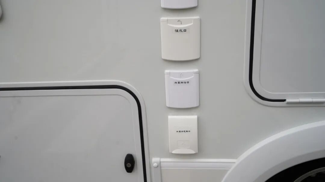 车尾设有贯通式储物舱,空间非常充足,外侧配有大尺寸舱门,取用物品非常方便;与一般C型房车不同的是,除了尾部外,这款车的底盘中部同样设有贯通式储物舱,一共两个贯通式储物舱,储物空间丰富。