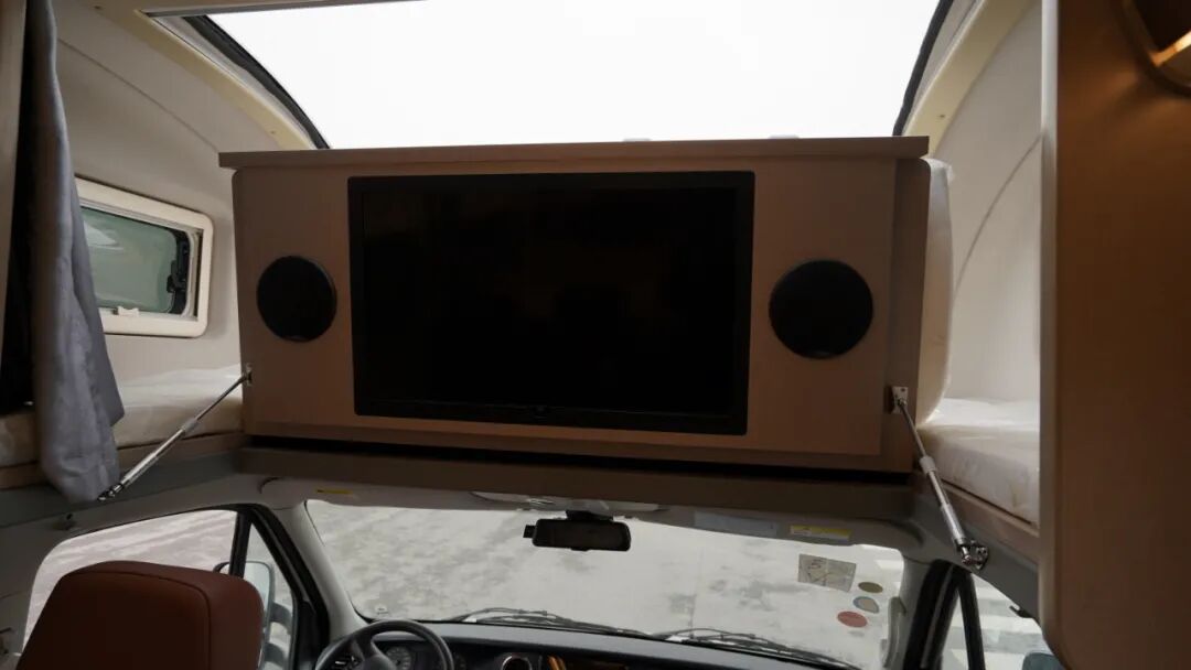 床铺下方内嵌了一台小米32寸智能电视,丰富户外旅行的娱乐方式。