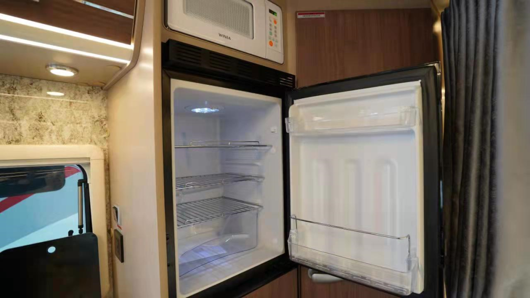 车厢采用三明治墙板,保温、隔热性能优异,旅行生活体验更佳;车身外侧配备了电动双阶踏步、220V电源插座、户外折叠板、房车专用乘车门等设施,为户外生活带来更多方便。