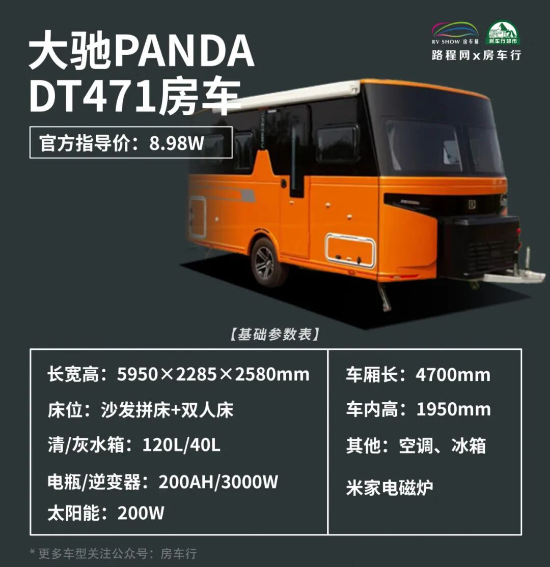 总体来看,大驰PANDA系统DT471拖挂房车不仅底盘性能优异,性价比高,还拥有多样化的外观和内饰可选,同时全景车窗、U型卡座的设计,提升了旅居生活的舒适度;价格方面,这款房车的官方指导价为8.98W,喜欢的朋友欢迎评论区下方留言!