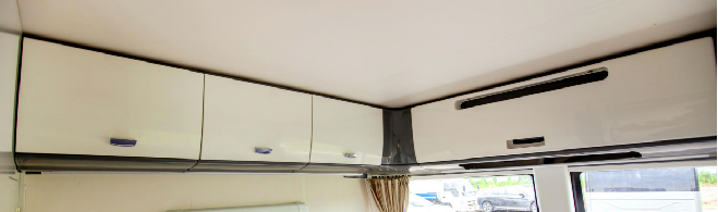 顶部设有环绕式吊柜,储物空间充足,足以收纳日常衣物用品;吊柜采用模块化装配工艺,质量轻,承重力高,后期维修也非常方便。