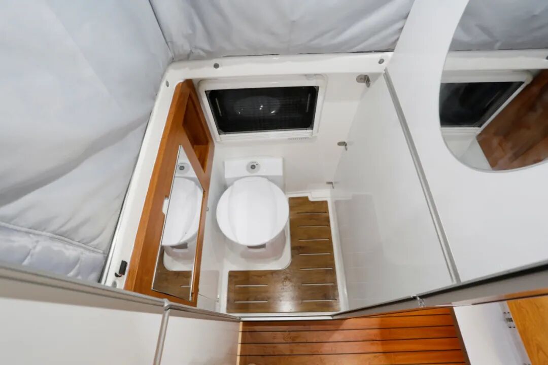 独创全封闭式折叠式独立卫浴区,保证了空间的私密性;内部配备洗手盆、抽拉式淋浴花洒、防水防滑地板、进口便携式马桶等,沐浴、卫浴体验更佳。