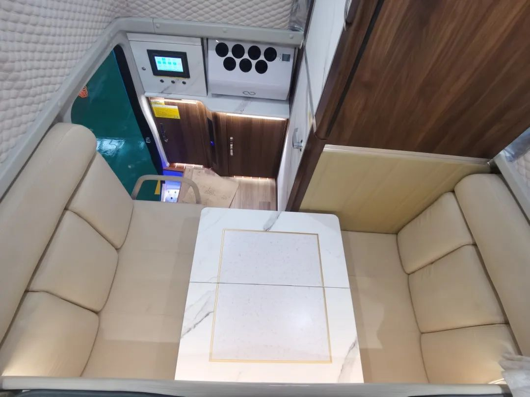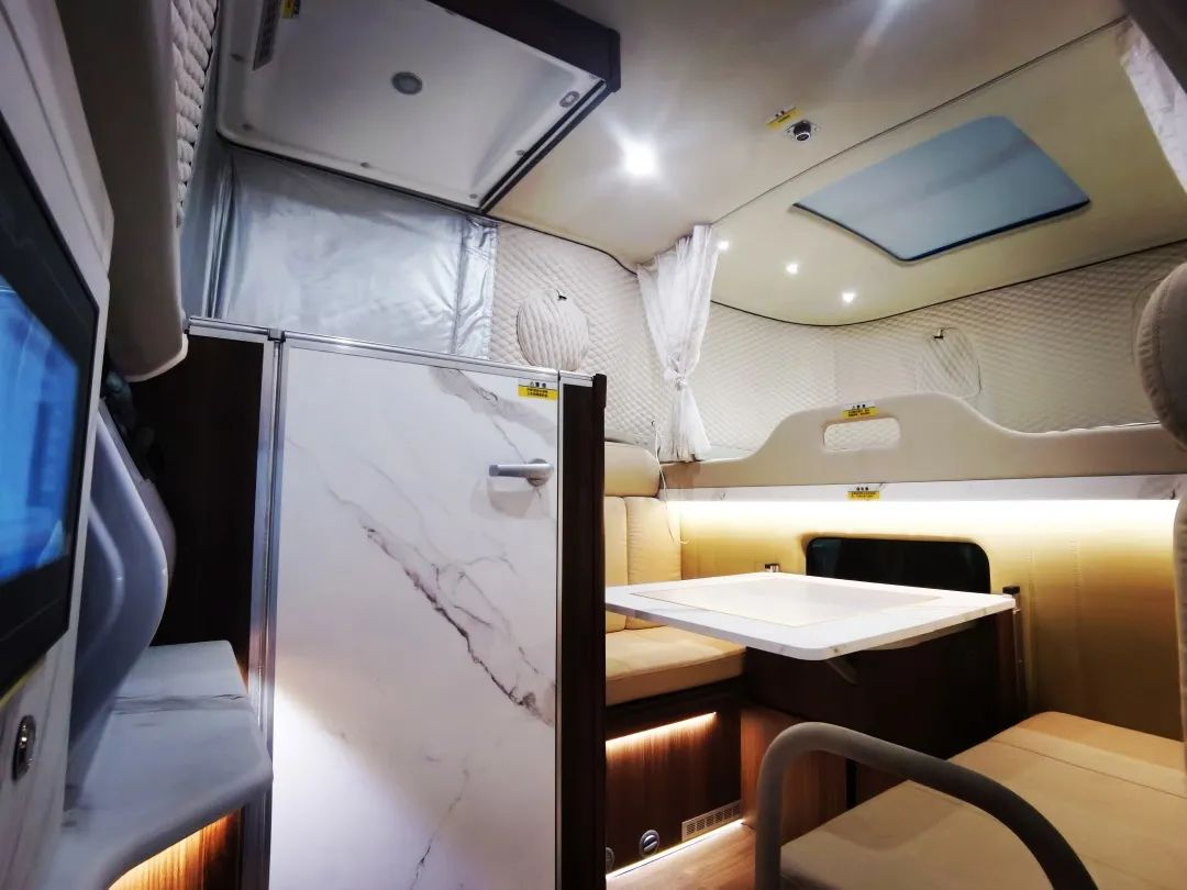 现代简约设计风格内饰,营造出恬静、温馨的旅居氛围;家具采用E0级轻质板材,搭配柚木地板,环保健康,符合现代绿色生活的理念;暖风系统配备行车自动空调、驻车24V制冷空调、驻车暖风系统、驻车水暖加热器,保证车内温度适宜。