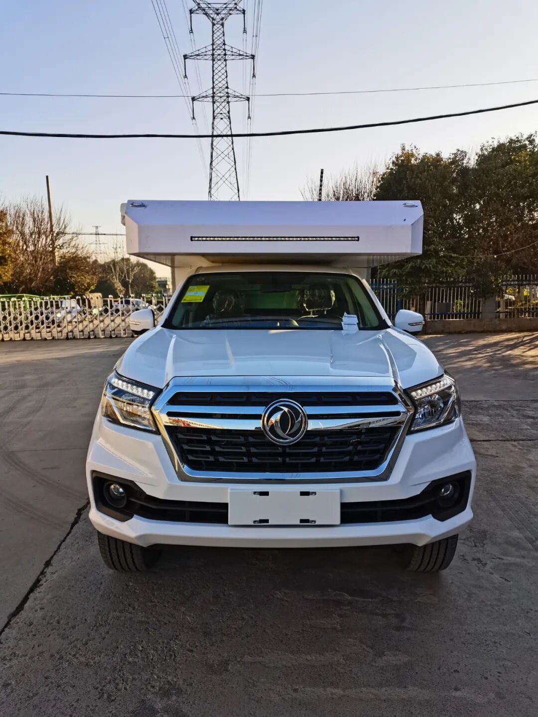 整车基于五十铃D-MAX皮卡底盘打造,外尺寸为5700x2200x2700mm,轴距3095mm;动力方面搭载1.9T涡轮增压柴油发动机,匹配6AT变速箱,最大功率122kw,峰值扭矩365N·m,在稳定性及操控性方面都有着非常出色的表现。