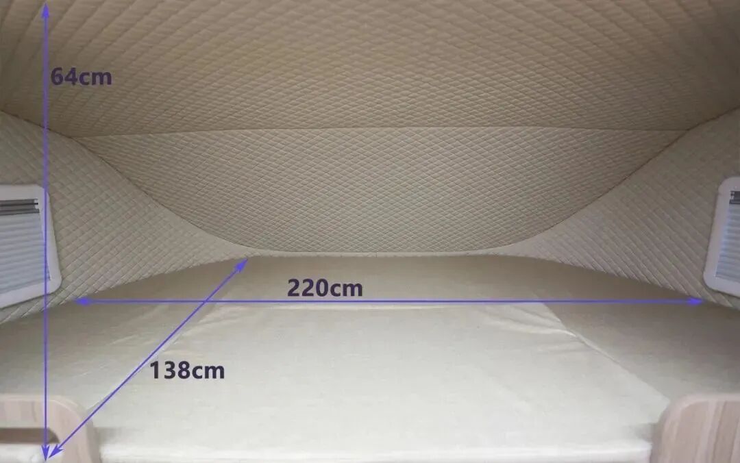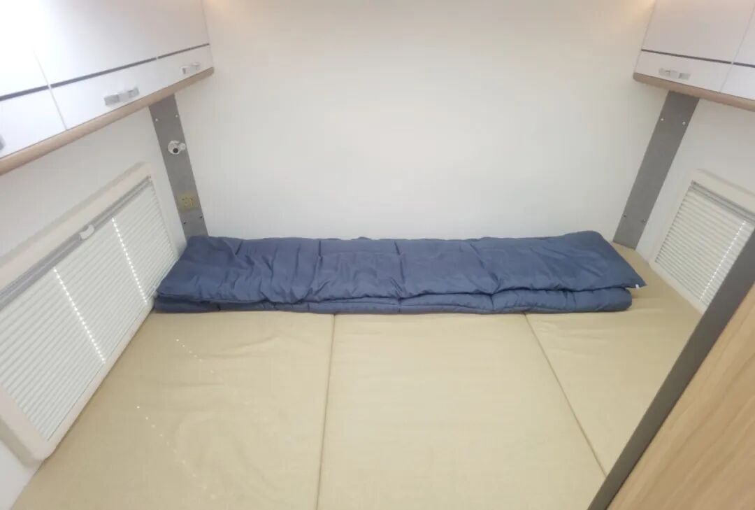 额头休息区设有双人床,床面铺设了高密度海绵床垫,带来更舒适的睡眠体验。