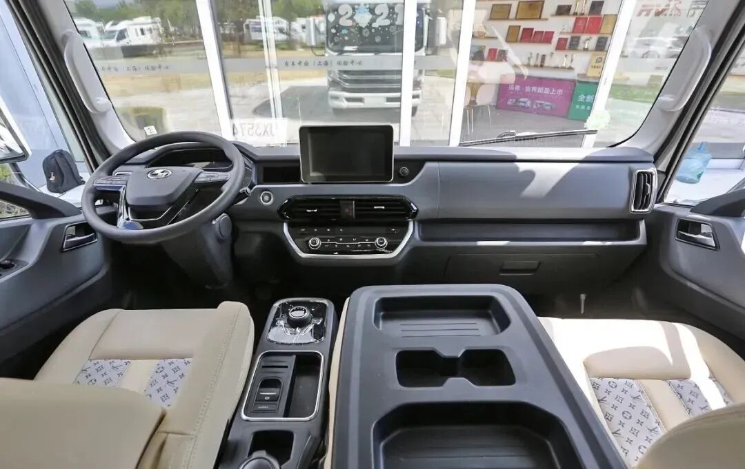 由于选用轻卡底盘,网红4号轻卡房车的驾驶室视野非常开阔,驾车更加安全;行车方面配有电动加热加宽外后视镜、倒车雷达、倒车影像、多功能方向盘、原车中控屏等。