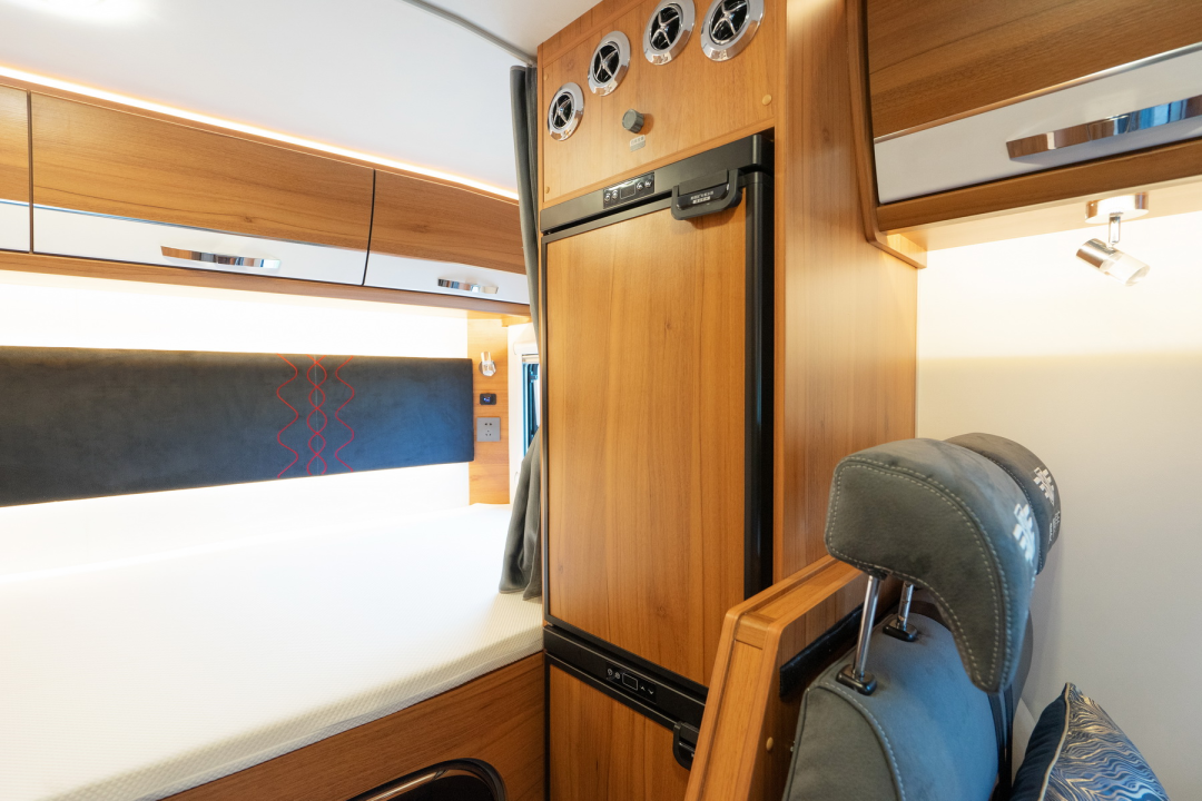 后方设置了152L车载冰箱,与厨房区搭配使用。
