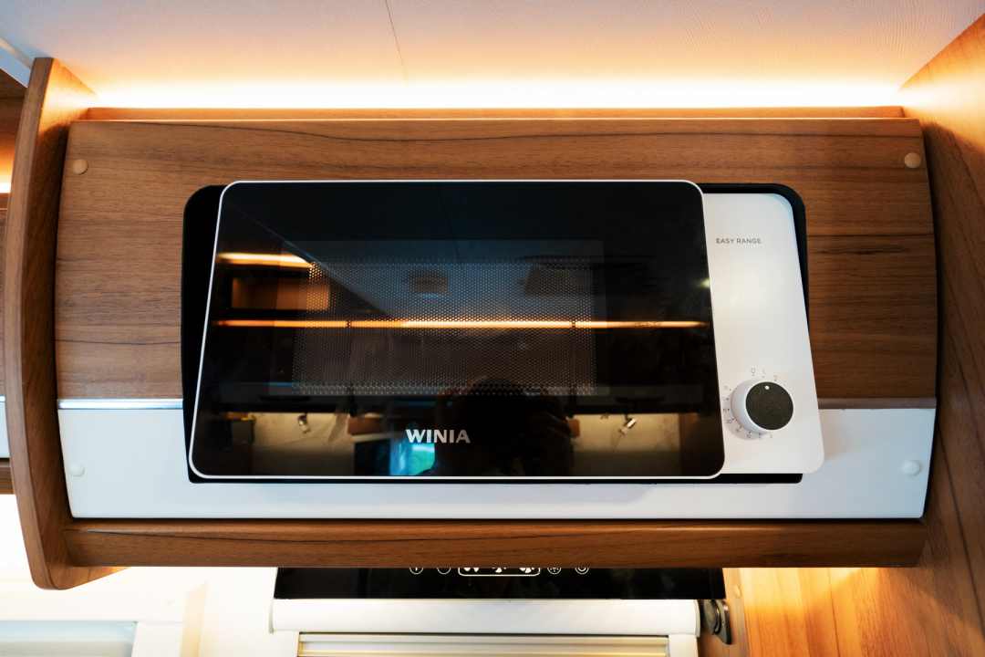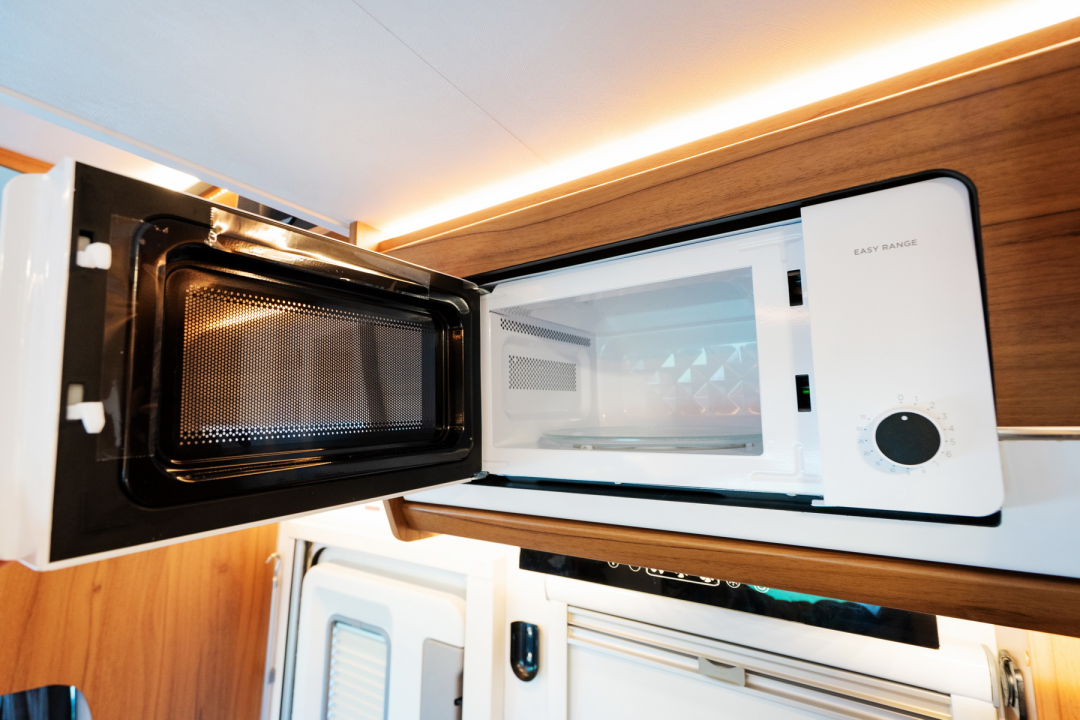 顶部配有一台微波炉,方便加热食物。