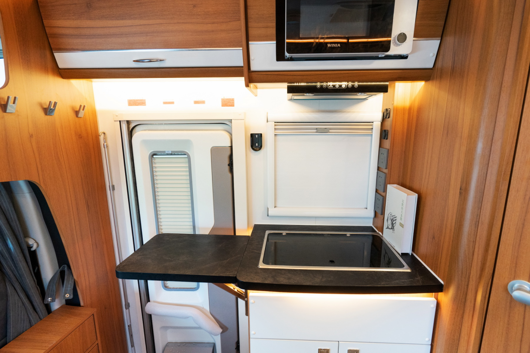 下方内嵌有莫博3KG洗烘一体机,解决户外旅行洗衣问题。