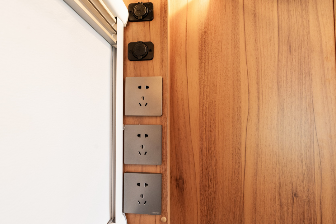 侧面设置了多处电源插座,方便为电子产品充电。