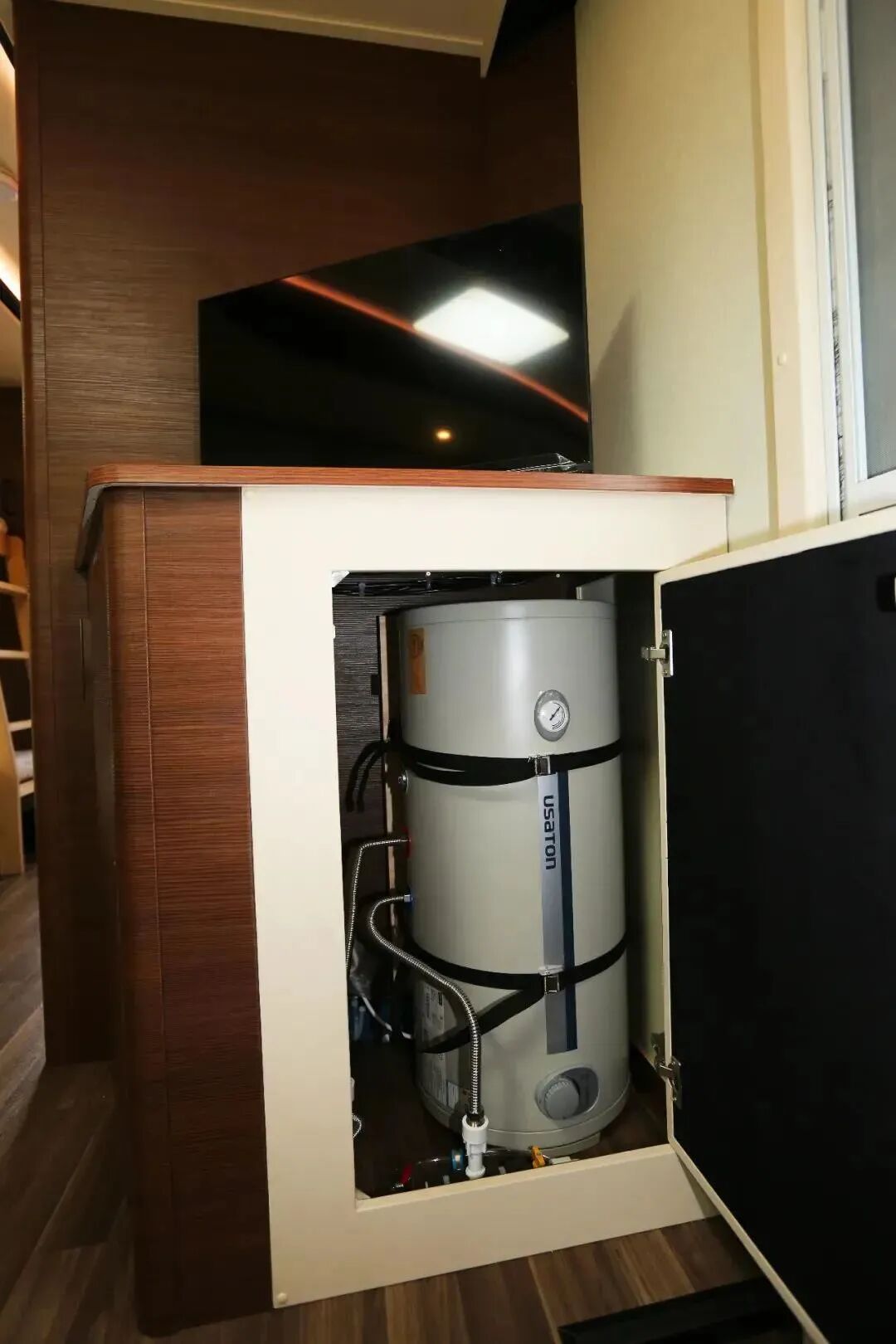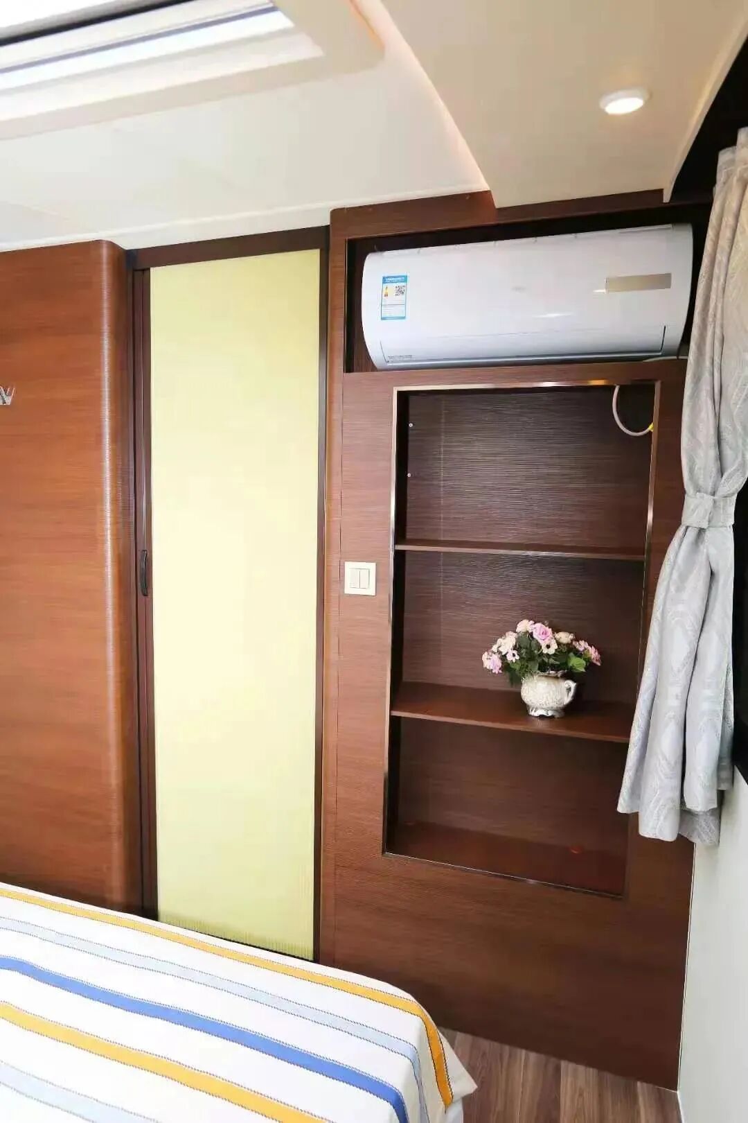 头部休息区上方搭载一台空调,取暖制冷充分满足;下方设有储物柜方便放置生活用品,当然,用来放置一些装饰品也是不错的选择;
