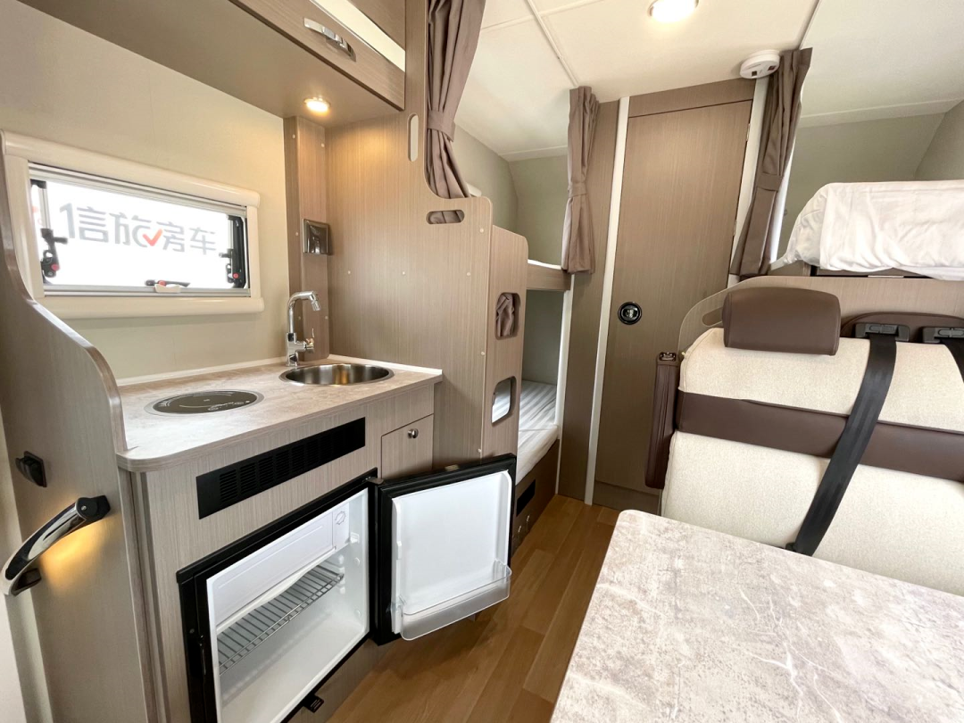 由于法规限制,自行式房车在车身长度方面大多维持在6米以内,超过6米就需要上黄牌、持A照才能驾驶;而在不到6米的车身长度中,驾驶舱又要占去相当大的比例,留给生活区的空间便显得十分有限。
