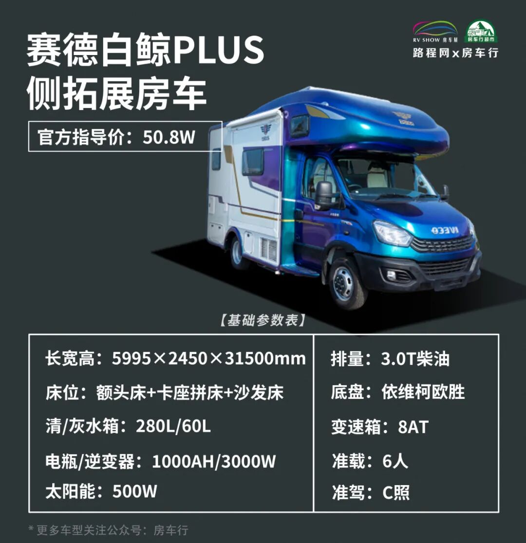 相比一般C型房车,赛德白鲸PLUS侧拓展房车的布局更有新意,设置了沙发床和卡座拼床,空间利用率更高,同时吧台的设置为旅行生活增添了更多情调;价格方面,这款房车的官方指导价为50.8W,喜欢的车友欢迎评论区下方留言。