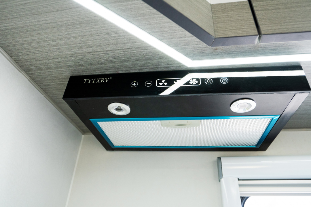 上方配有抽油烟机,解决车内烹饪的油烟问题。