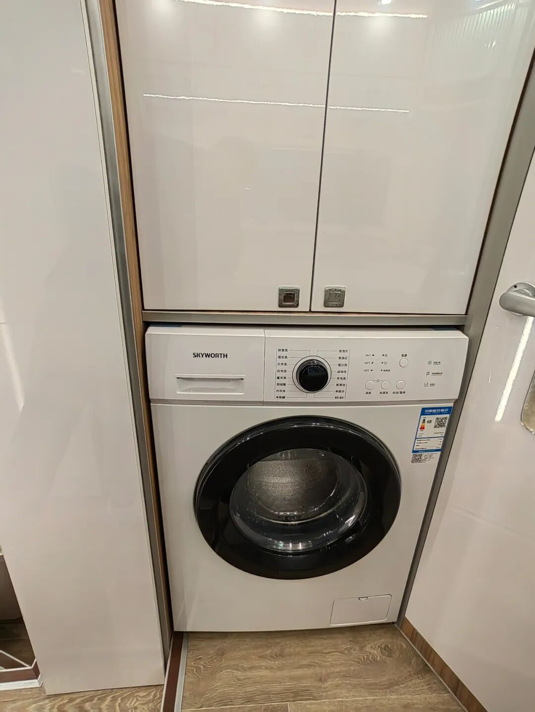 卫生间外部设置了一台6kg家用洗衣机,解决户外旅行洗衣问题。