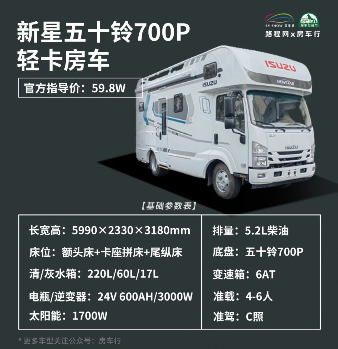 作为一款轻卡房车,新星五十铃700P定制版轻卡房车动力充足,车内空间宽敞,生活设施及水电配置齐全,是一家人户外旅行的不二之选;价格方面,这款房车的官方指导价为59.8W ,喜欢的车友欢迎评论区下方留言!