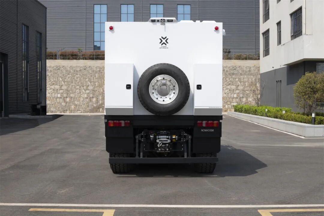 整车接近角16°,离去角17°,纵向通过角28°,越野性能出色;后驱驱动系统提供强劲的牵引力,后桥还带一把差速锁,提升路面的通过能力;续航方面配有300L超大油箱。