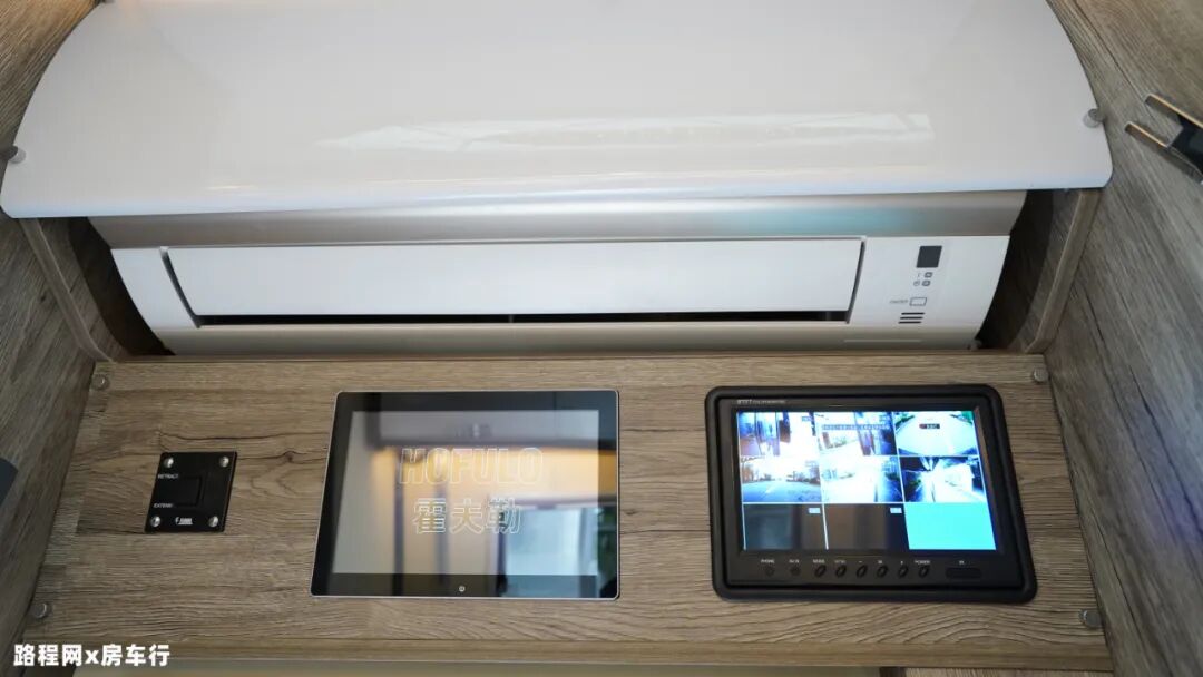 主门右手边为48V房车电源管理中心所在的位置,通过它可以很直接的看到车上剩余储存电量,同时也可以对车内电器起到控制效果,操作简单,使用起来很是方便;