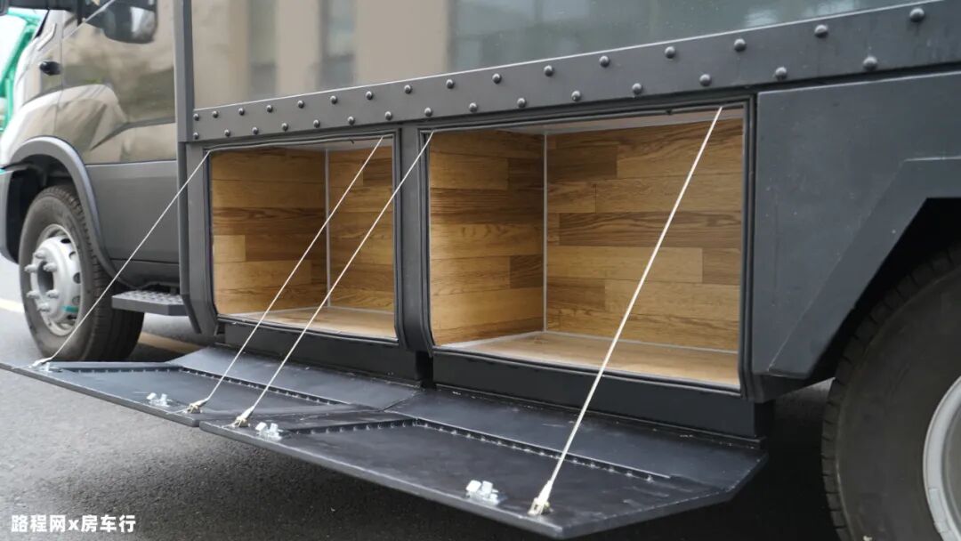车身左侧下方设有两组空间较大的外置储物舱,可用于大件行李或外部设施等物品的存放;