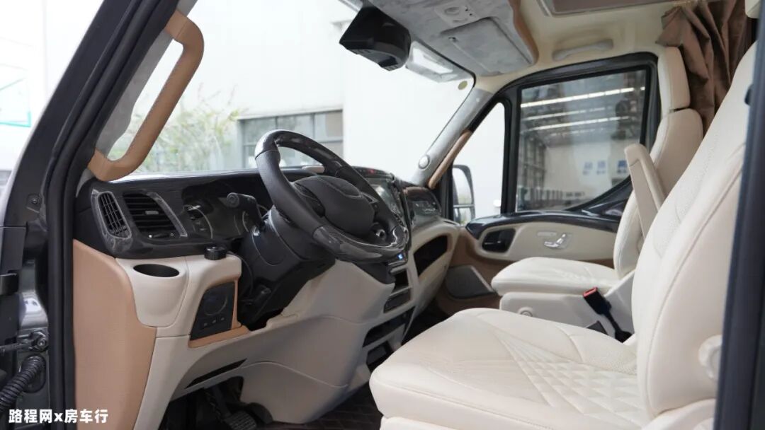 动力方面,霍夫勒启翔后全拓版房车基于进口依维柯底盘打造而成,搭载一台3.0T柴油发动机,100L油箱,20L尿素箱,满足国六排放标准,最大功率为132千瓦/180马力,最大扭矩可达430牛米;驱动方式为后驱后双胎,同时传动系统匹配8AT变速箱,并随底盘自带后桥空气悬挂系统、胎压监测系统、牵引力控制 & 陡坡缓降、自动雨刷/大灯(近光)、电子手刹、全LED大灯等辅助驾驶,操作方便,整体驾驶感受也很舒适;