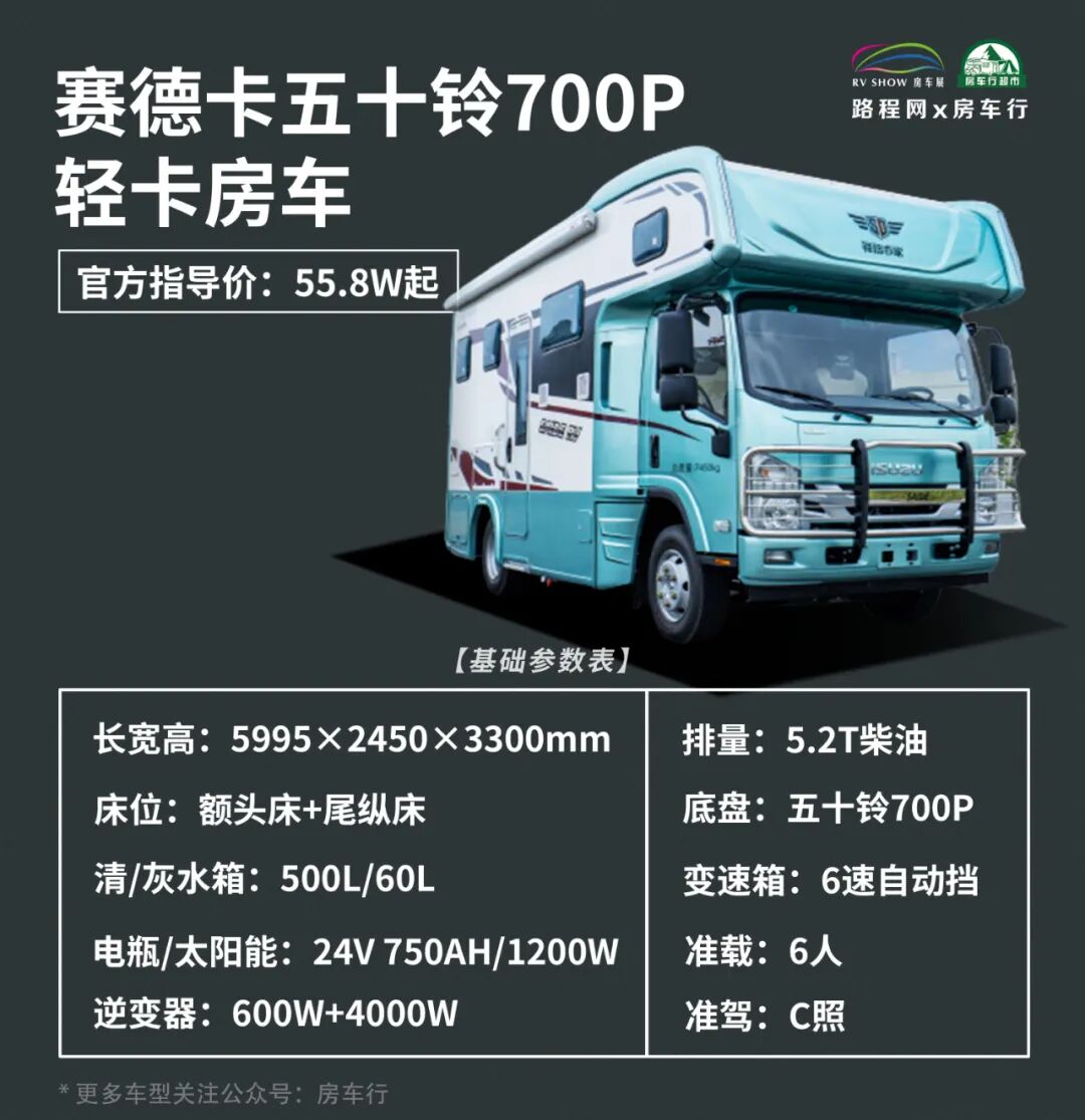 整体来看,这款赛德驿路亦家赛德卡700P轻卡房车沿袭了轻卡房车大空间的特点,外观设计和水电配置方面也非常出色,同时泡茶桌台和投影幕布的设计,提升了旅行生活品质;价格方面,这款房车的官网指导价为55.8W起,喜欢的车友欢迎评论区下方留言!