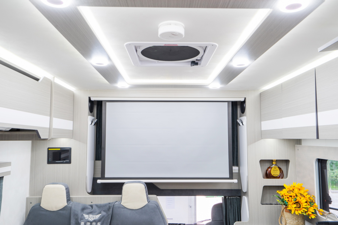 侧面设有投影幕布+极米投影仪,带来更丰富的影音娱乐体验。
