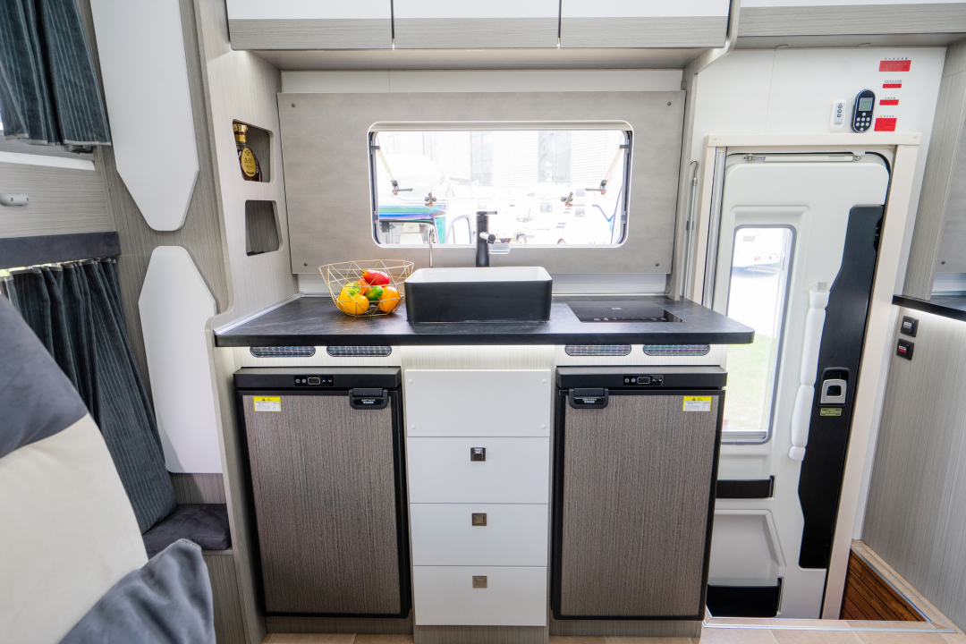 水电配备了500L净水箱、60L灰水箱、24V 750AH锂电、600W+4000W双逆变器、1200W太阳能、80A发电机等,这样大容量的水电配置,再也不必为旅行水电续航问题担忧!
