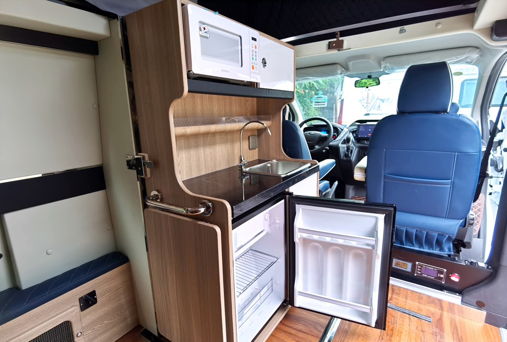 水路系统配备95L清水箱、45L灰水箱;电路系统配备了7200W(12V+48V)双电源系统、磷酸铁锂专用电池和3000W充电逆变器,保证户外旅行的用电续航;车内还配有燃油加热系统、变频冷暖空调等设施,保证生活空间温度适宜。