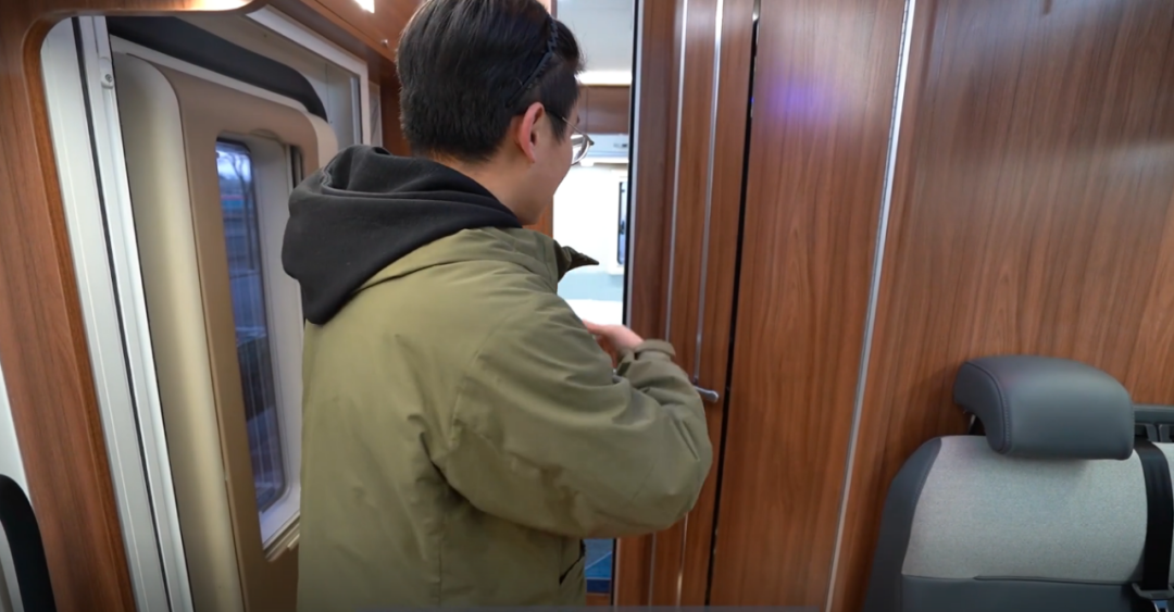 右侧车门旁立柜内设有折叠式隔板,顺着顶部导轨拉开,可将橱柜区域和生活空间分隔开来,形成独立的厨房区,有效减少车内做饭时油烟泛滥的问题。