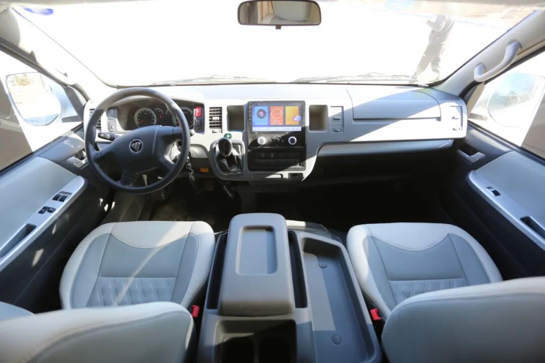 驾驶室主副驾驶座椅经过软包处理,乘坐更加柔软舒适;中控台采用硬塑料材质,在满足使用功能的同时,也有非常不错的装饰效果;行车方面配备了中控大屏、胎压监测、倒车影像等。