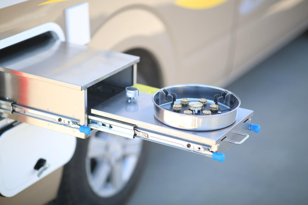 右侧设有抽拉式燃气灶,打开盖板即可抽出使用,方便车友在户外展示厨艺。