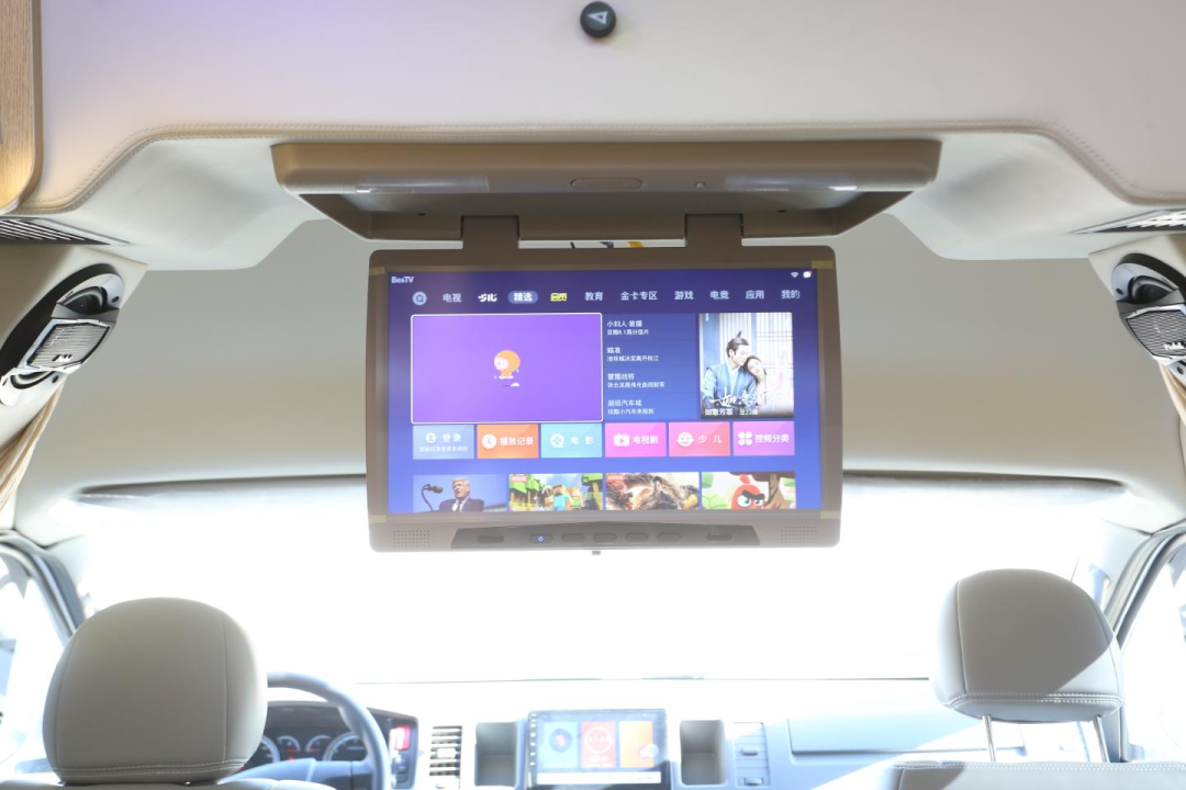 驾驶室上方配有一台19寸折叠电视,休息时可以用来看电影、听音乐,可以更好的娱乐放松。