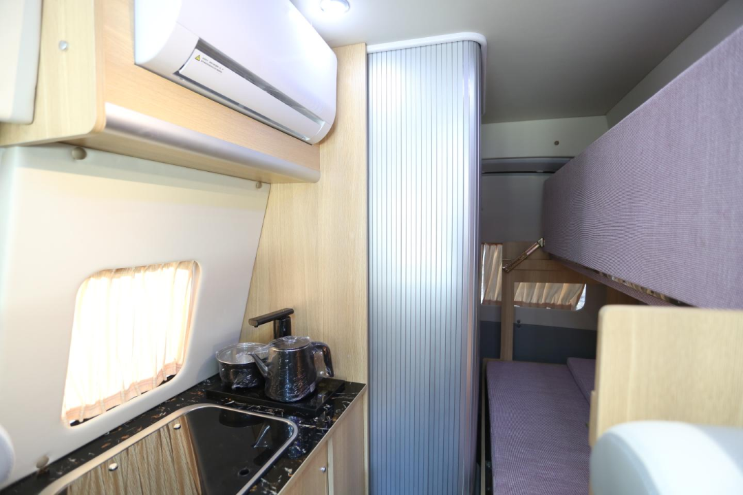橱柜上方设置了一台直流变频空调,可以根据个人需求调节车内温度,达到更好的居住效果。