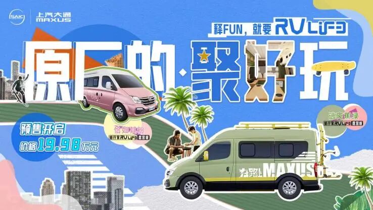 5月27日,上汽大通MAXUS 旅行家RVLIFE露营版开启预售,共推出三款外观配色,预售价19.98万元起。诚意的用户权益政策同样属于露营爱好者,预售期间,用户购车可享18期免息金融礼,以及价值1500元的户外装备礼,让购车0压力,用车很舒心。精彩在延续,用户还可参与#RVLIFE玩家征集令#抢赢5万元“玩家基金”,定制专属房车生活。