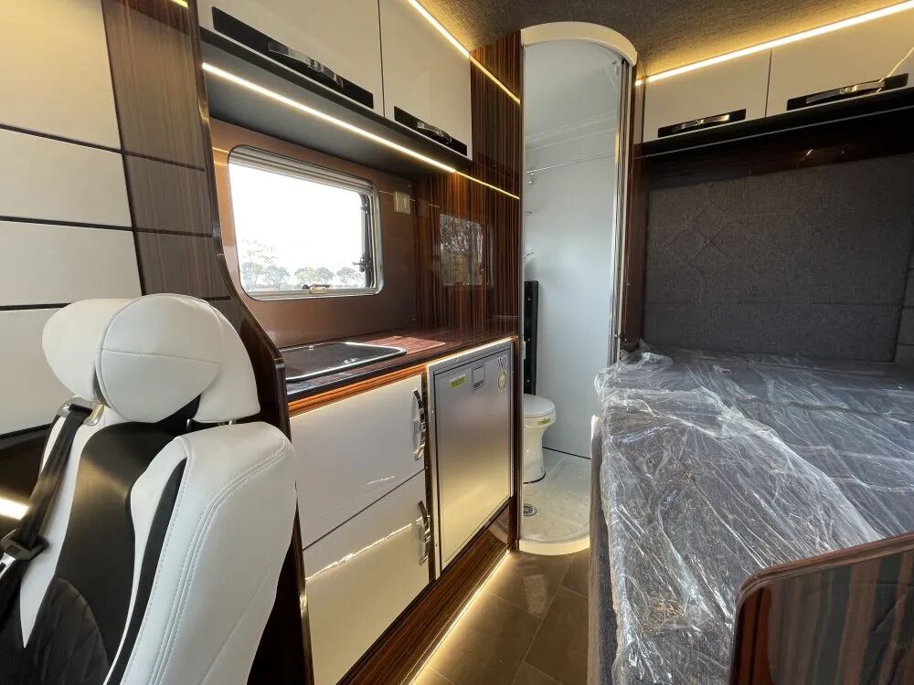● 水电配备110L防冻内置清水箱+80L底置拓展清水箱、25L灰水箱、35L黑水箱、车规级新能源磷酸铁锂电池组、行车充电管理系统等,支持市面上95%的充电接口与充电方式续航持久;