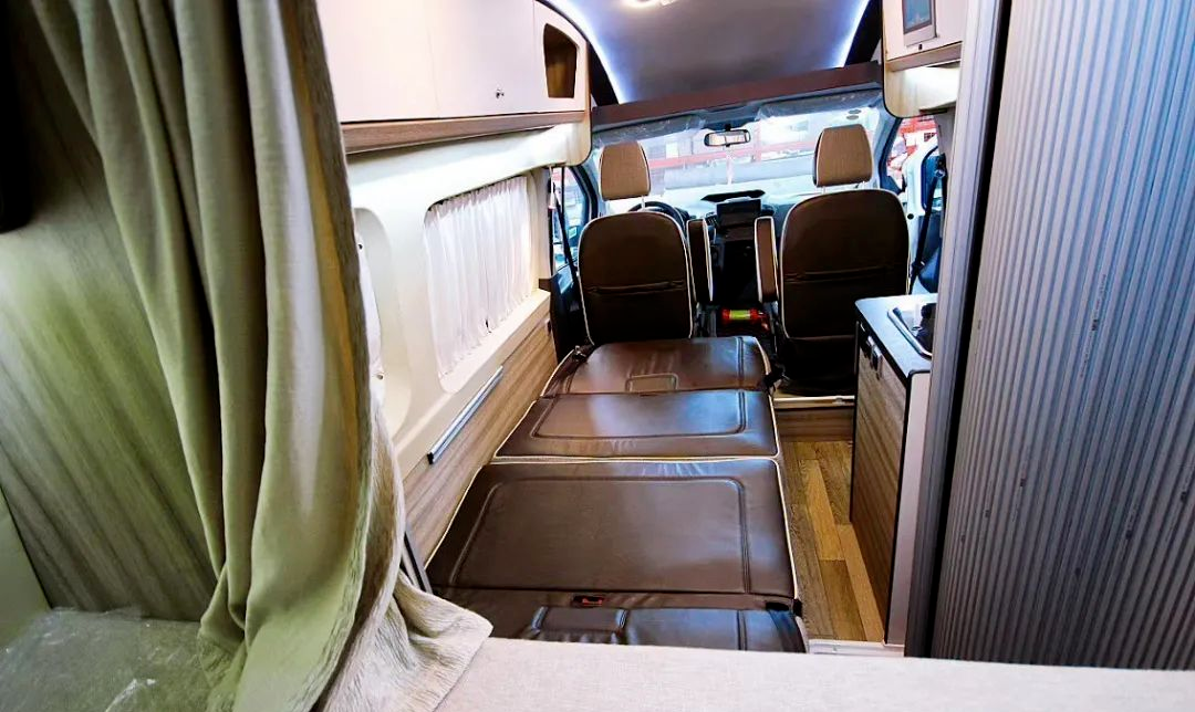 ● 尾部纵置双人床,配有翻折式拓板增加睡眠面积;