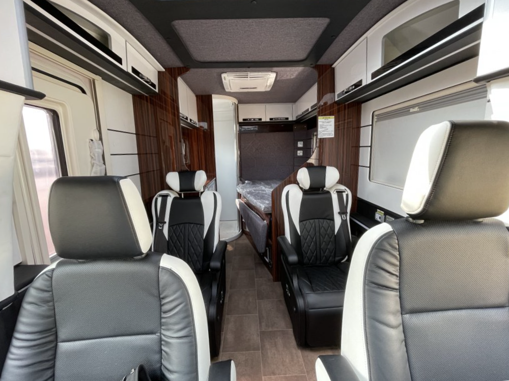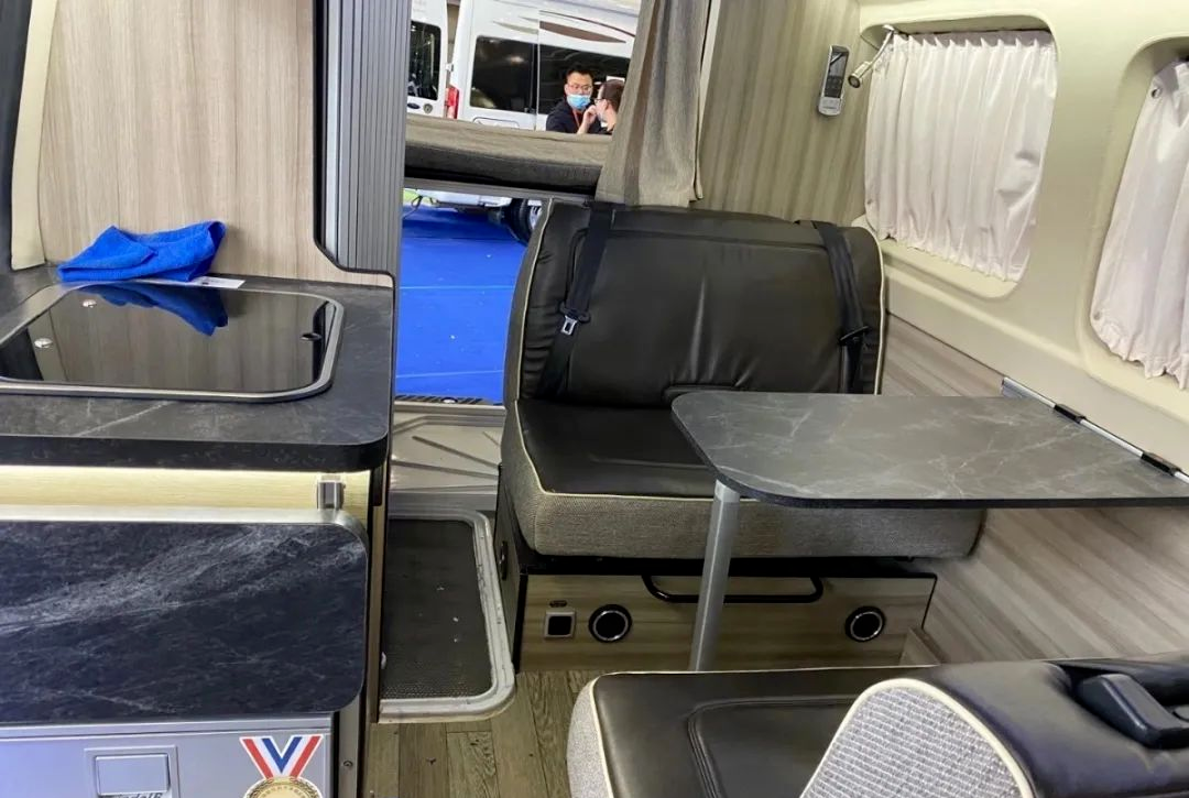 ● 商务风内饰,两个四向电动调节座椅带按摩加热功能,配有可折叠餐桌;