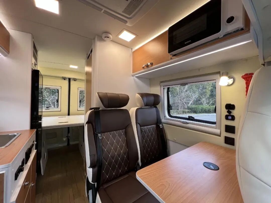 生活区布局4座/5座可选,会客区双航空座椅,绗绣工艺,美观舒适;