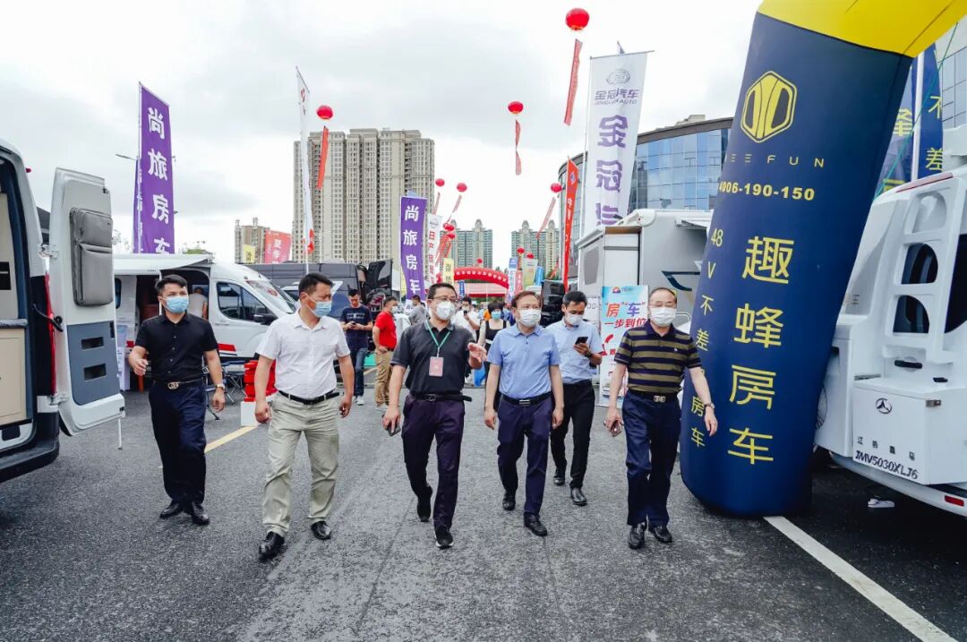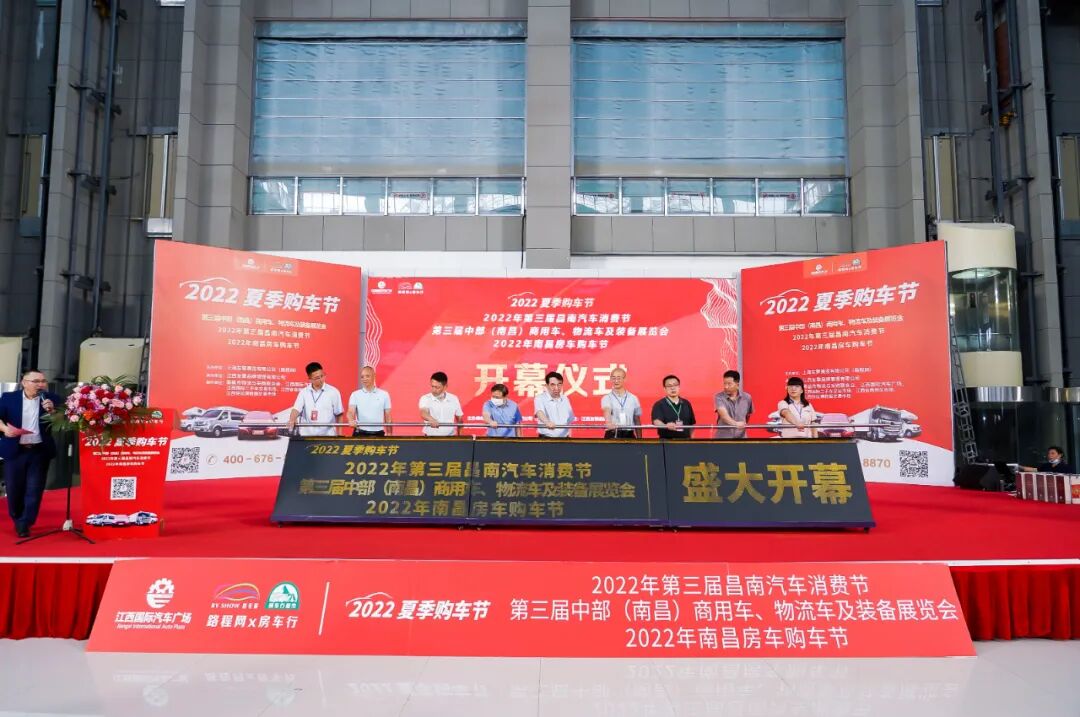 活动现场举行了盛大的开幕仪式,南昌市会展办主任-胡星;南昌市会展办副主任-涂平辉、喻欣荣;全国工商联汽车摩托车配件用品业商会常务副会长、江西省汽车摩托车配件用品商会会长、江西国际汽车广场董事长-陶玖根;驻马店中集华骏总经理-洪光;南昌市物流与采购联合会会长-成永平;客乐得集团董事长-罗来安;江铃集团旅居车总经理-乐小松;趣蜂房车总经理-曹洪波;骏驰房车总经理-于俊杰;景驿房车总经理-徐新;季候风董事长-黄飞腾;尚旅房车总经理-余书敏;南昌友通汽车销售服务有限公司总经理-余舜旸;南昌市聚安汽车销售有限公司总经理-陈春辉;威马用户中心南昌瑞腾店总经理-杨利娟;路程网x房车行创始人、上海友擎展览有限公司CEO-丁宏波;以及相关政府部门、组织单位、商会协会的众多领导和嘉宾出席了本次开幕式,在现场所有嘉宾及媒体的见证下,各领导代表一起为2022南昌房车购车节·2022夏季购车节暨第三届中部(南昌)商用车、物流车及装备展览会开幕推杆,宣告活动正式开幕!