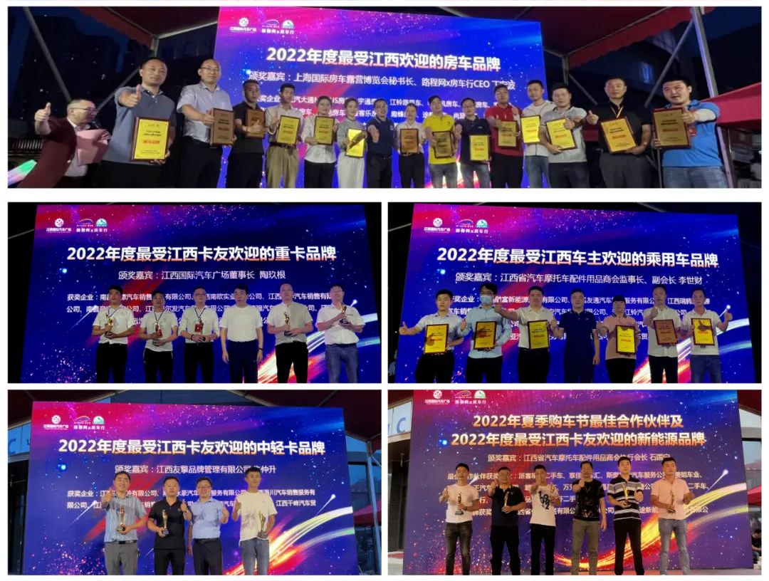 除了琳琅满目的参展车型外,活动翌日晚上,主办方还举办了“2022年夏季购车节答谢晚宴暨颁奖晚会”,颁奖奖项包括“2022年度最受江西欢迎的房车品牌”、“2022年度最受江西卡友欢迎的重卡品牌”、“2022年度最受江西卡友欢迎的中轻卡品牌”、“2022年度最受江西卡友欢迎的新能源品牌”、“2022年夏季购车节最佳合作伙伴”、“2022年度最受江西车主欢迎的乘用车品牌”等,在此,再次恭喜所有获奖企业。